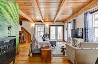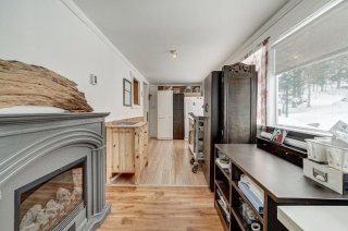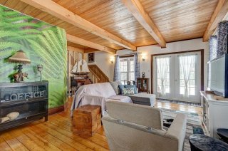 + Zonage résidentiel et commercial + Propriété ayant fait l'objet de certaines rénovations + Cuisine mise à jour : armoires pleine hauteur, dosseret en céramique, comptoir-lunch en bois et hotte cheminée + Planchers en bois (pin rouge) + Véranda 4 saisons pouvant être convertie en bureau ou 2e chambre + Plafonds en bois de type cathédrale + Salle de bain rénovée avec plancher en céramique + Salon avec grandes fenêtres et luminosité naturelle + Poêle à bois dans la pièce centrale + Escalier et rampe en bois de qualité + À l'étage : chambre principale, walk-in et salle d'eau + Plinthes électriques + Toiture en tôle style tuiles d'argile + Revêtement extérieur en bois + Galerie en bois sur trois côtés avec toiture + Trois remises extérieures + Petit ruisseau traversant le terrain